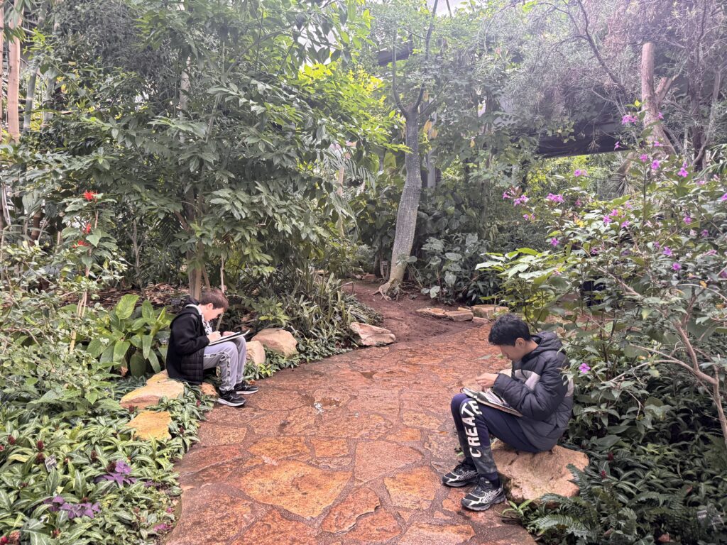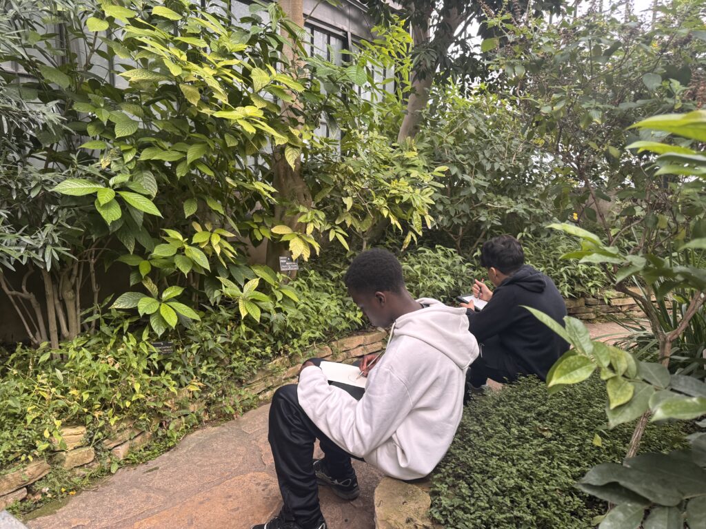 Cette visite leur a permis d’observer et de découvrir de nombreuses espèces végétales, issues de milieux naturels variés. Immergés dans cette atmosphère végétale singulière, les élèves ont pris le temps d’analyser les formes, textures, volumes et détails des plantes, affinant ainsi leur regard et leur sens de l’observation.