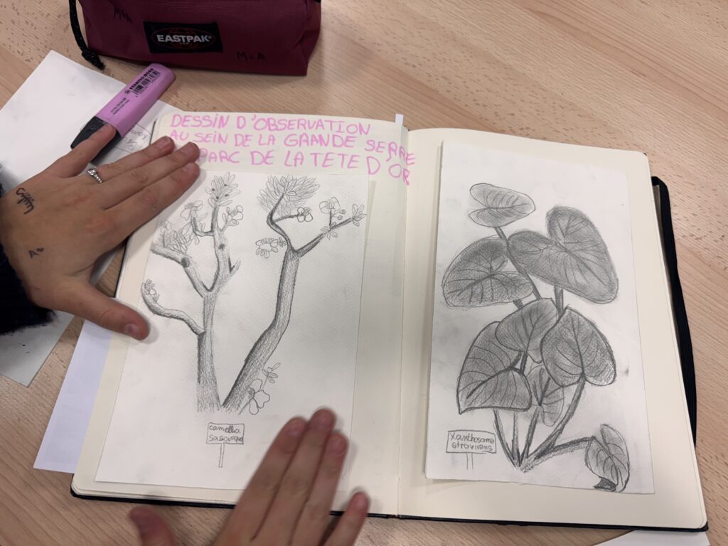 Sur place, ils ont réalisé des croquis et des dessins d’observation, une pratique essentielle en arts plastiques qui favorise une approche sensible, attentive et respectueuse du vivant.