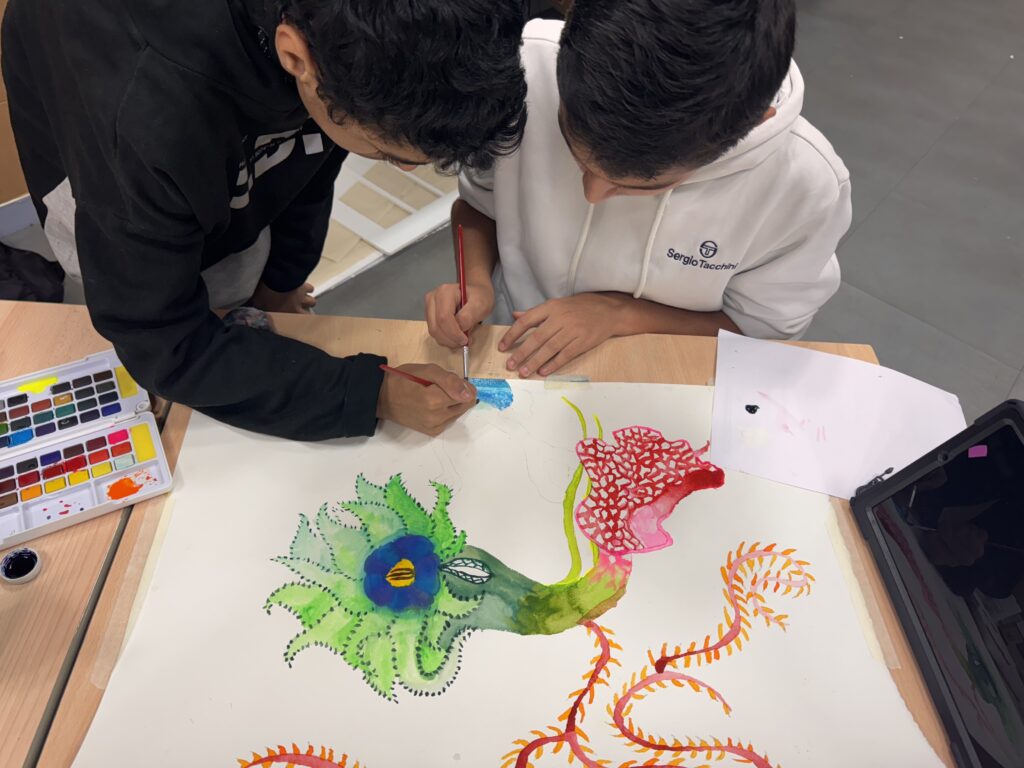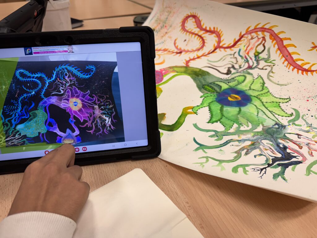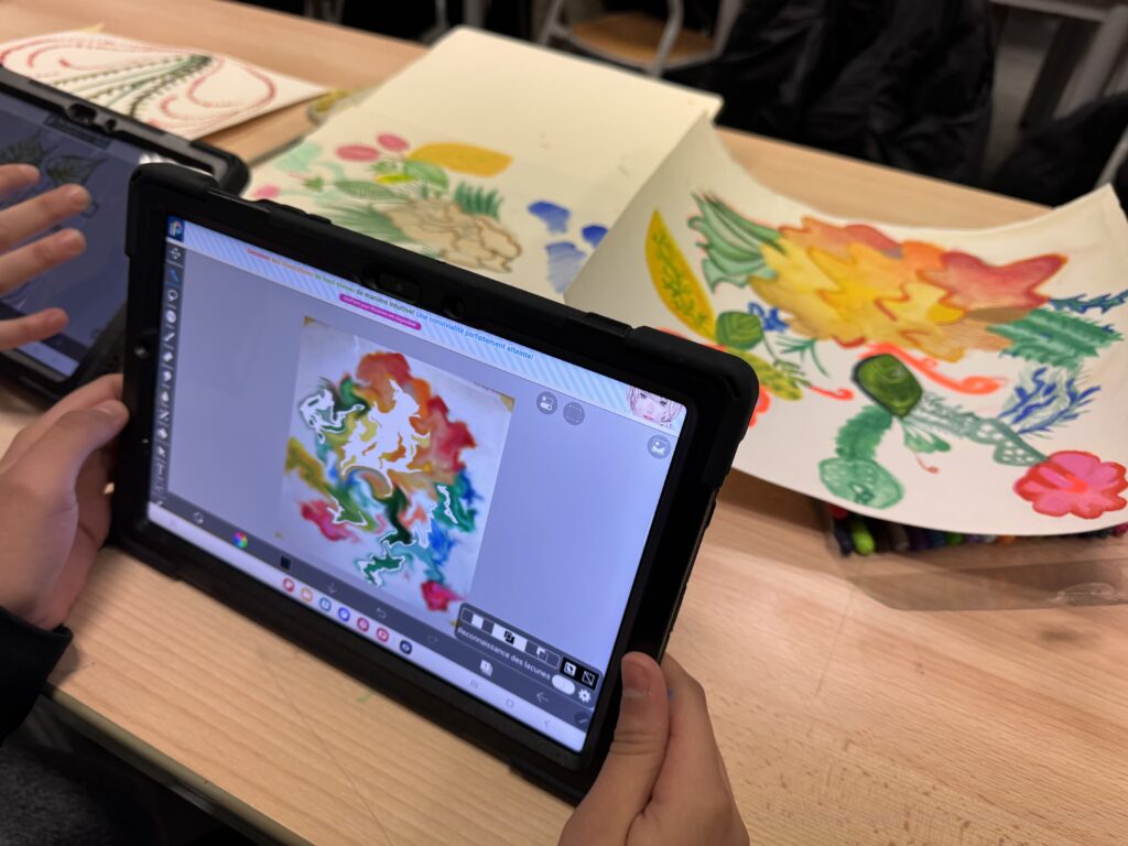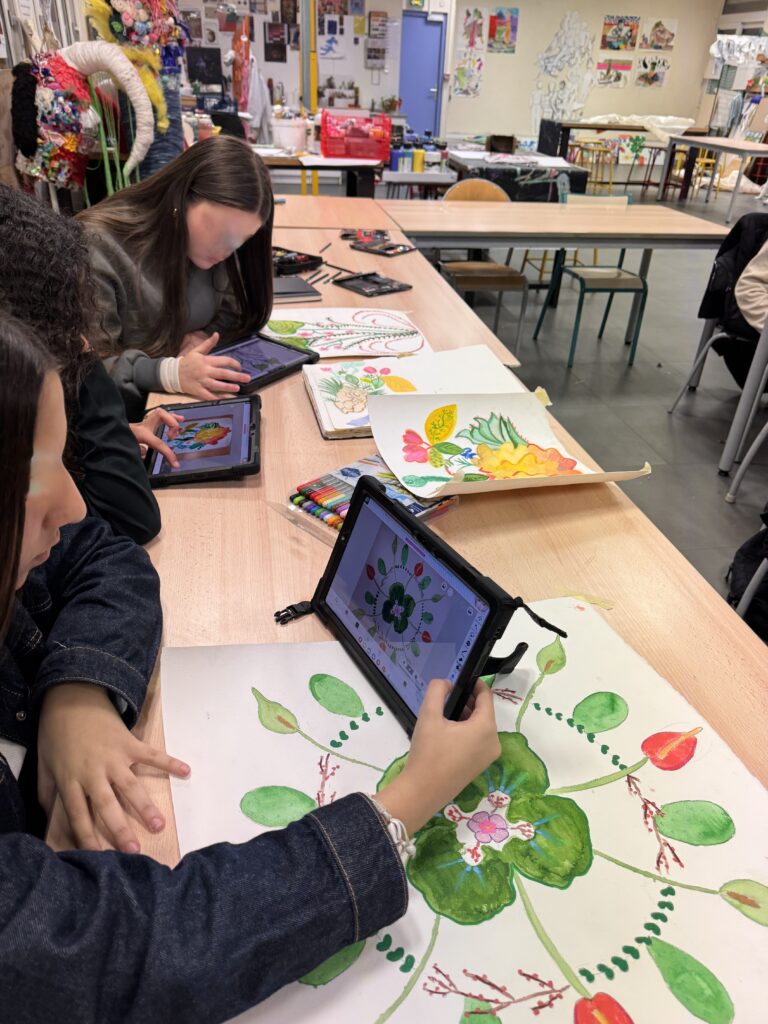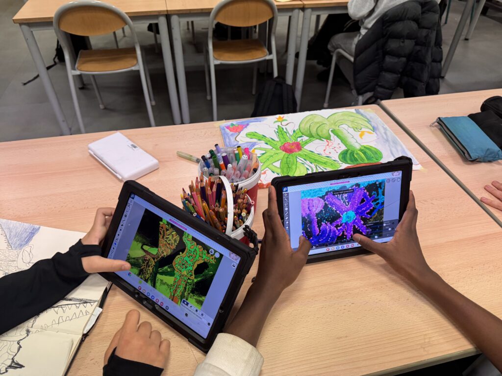 En fin de projet, les élèves ont bénéficié de l’intervention de M. Buet, enseignant en arts plastiques au lycée Lumière, qui leur a ouvert de nouvelles pistes de recherche, à la fois sur tablettes numériques et en lien avec les intelligences artificielles génératives. Cette dernière étape a permis l’expérimentation de courtes animations, mêlant animaux hybrides et plantes observées ou inventées, prolongeant la réflexion autour de l’hybridation et de la création contemporaine.