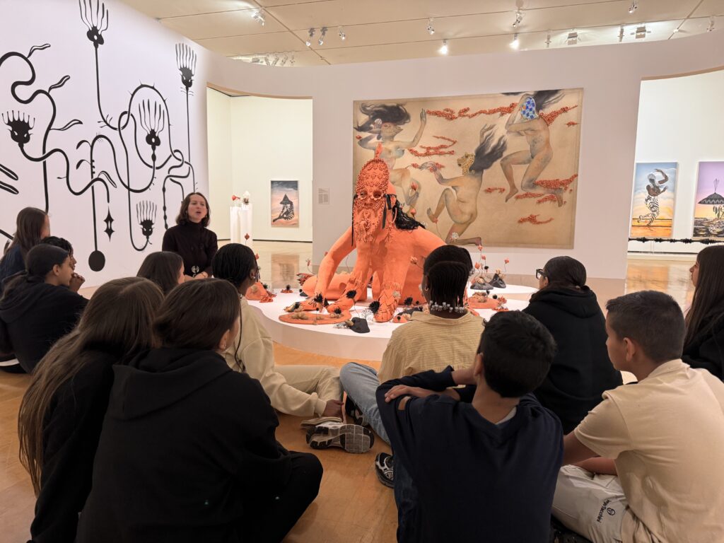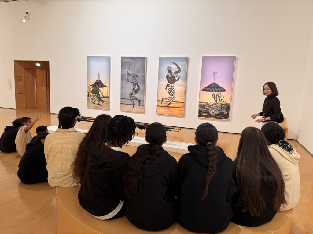 Lors de cette visite médiatisée, les élèves ont bénéficié d’un accompagnement attentif et d’explications précieuses leur permettant de mieux comprendre les démarches artistiques et les choix plastiques mobilisés par les artistes pour exprimer leurs intentions, émotions et visions du monde.