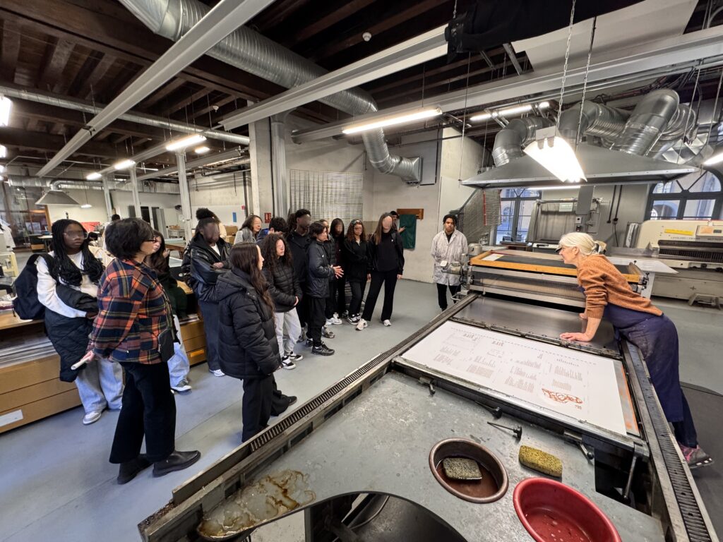 Tout au long de la visite, des enseignants et techniciens de l’ENSBA-Lyon se sont rendus disponibles pour répondre aux questions des élèves. Ils ont ainsi apporté des informations précieuses sur les métiers liés aux pratiques artistiques, les différents cursus possibles, ainsi que sur les pistes d’orientation en lien avec un parcours artistique et créatif.