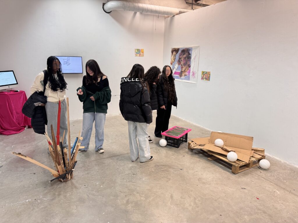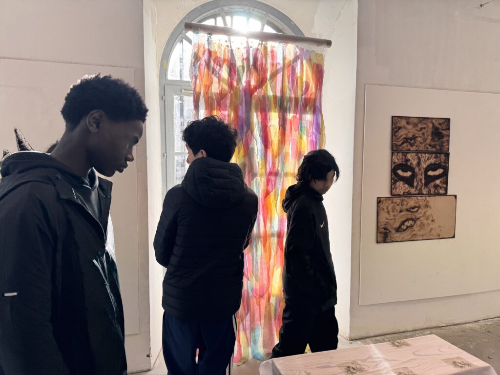 Ils ont également pu découvrir les expositions et accrochages réalisés par les étudiants, témoignant de la diversité des démarches artistiques, des recherches plastiques et des projets menés au sein de l’école. Ces temps de visite ont été enrichis par des échanges directs avec les étudiants, qui ont pris le temps de présenter leurs expérimentations et d’expliciter leurs réflexions plastiques.